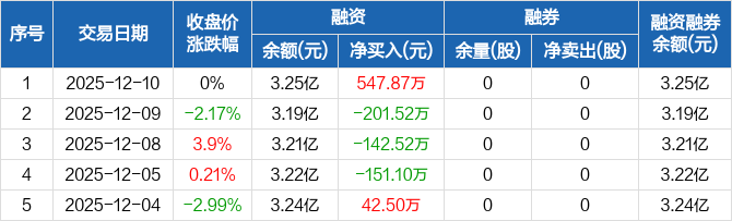 安诺其:融资净买入547.87万元,融资余额3.25亿元(12-10)