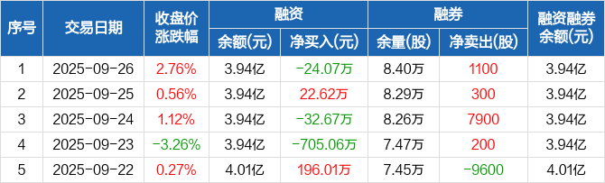 海新能科:融资净偿还24.07万元,融资余额3.94亿元(09-26)