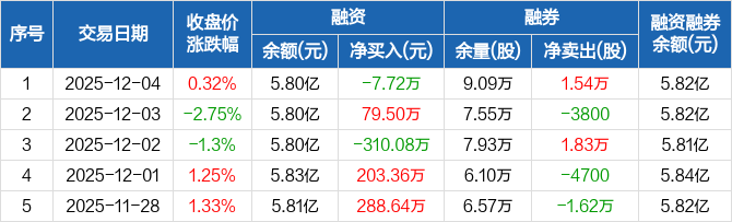 数字政通:融资净偿还7.72万元,融资余额5.8亿元(12-04)