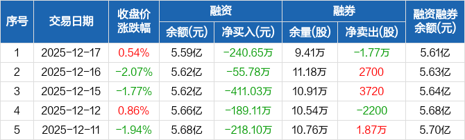数字政通:融资余额5.59亿元,创近一年新低(12-17)