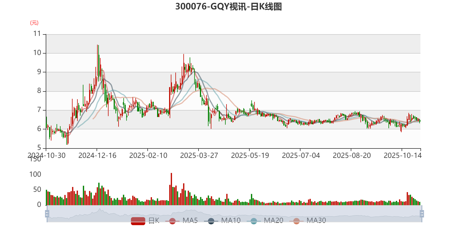以10月29日收盘价计算,GQY视讯目前市盈率(TTM)约为-42.81倍,市净率(LF)约3.02倍,市销率(TTM)约22.49倍。