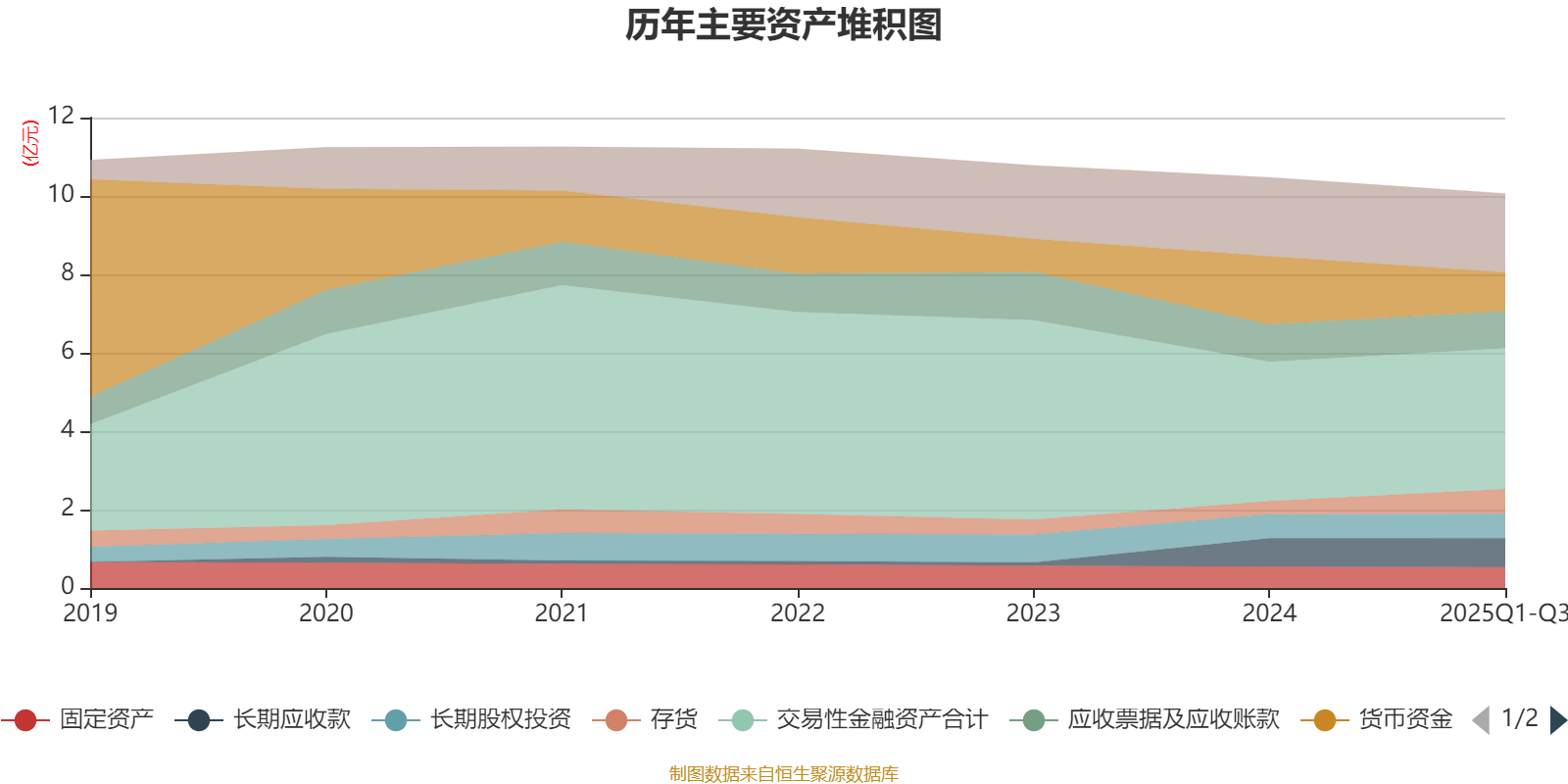 资产重大变化方面,截至2025年三季度末,公司货币资金较上年末减少43.16%,占公司总资产比重下降6.79个百分点;存货较上年末增加85.97%,占公司总资产比重上升3.03个百分点;交易性金融资产合计较上年末增加1.11%,占公司总资产比重上升1.77个百分点;一年内到期的非流动资产较上年末减少29.91%,占公司总资产比重下降0.81个百分点。