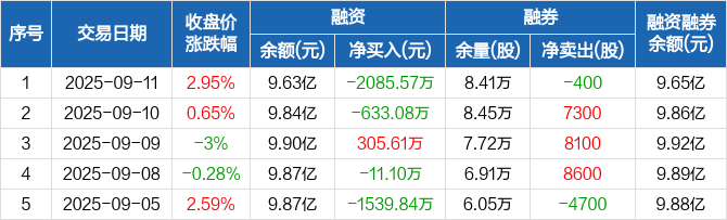 国民技术:融资净偿还2085.57万元,融资余额9.63亿元(09-11)