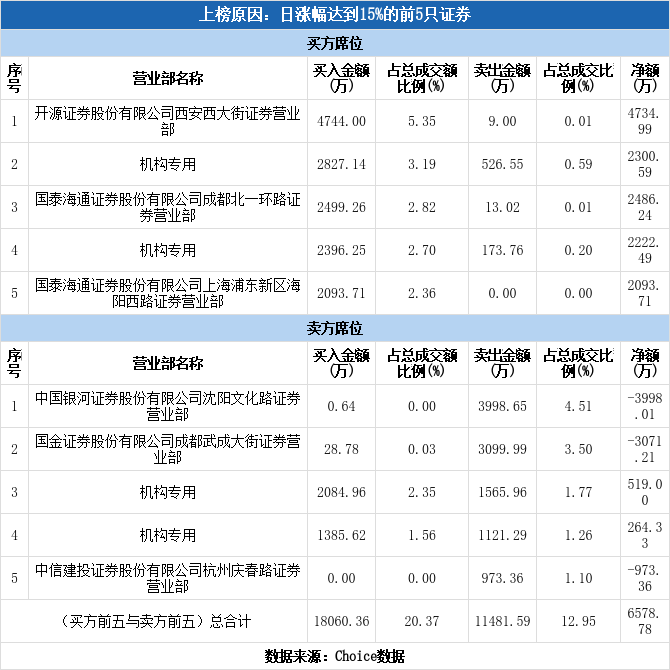 深交所2025年12月9日交易公开信息显示,恒信东方因属于日涨幅达到15%的前5只证券而登上龙虎榜。恒信东方当日报收6.53元,涨跌幅为20.04%,换手率23.37%,振幅20.59%,成交额8.86亿元。