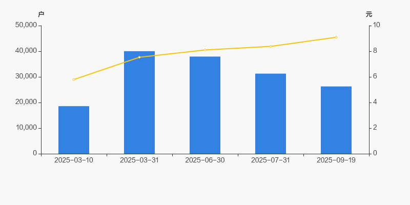 截至2025年9月19日,公司最新总股本为5.1亿股,其中流通股本为3.45亿股。户均持有流通股数量由上期的1.1万股上升至1.31万股,户均流通市值11.92万元。