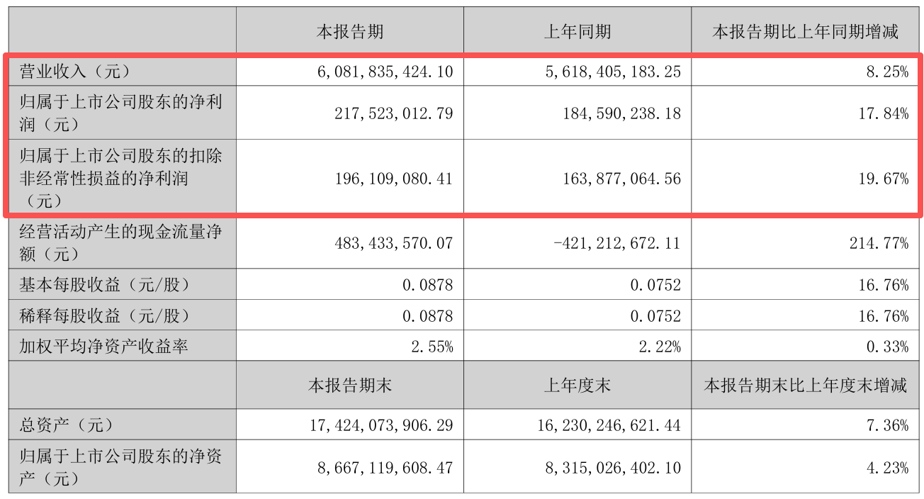 2025年上半年,公司营业收入为60.82亿元,同比增长8.25%;归母净利润为2.18亿元,同比增长17.84%;扣非归母净利润为1.96亿元,同比增长19.67%。