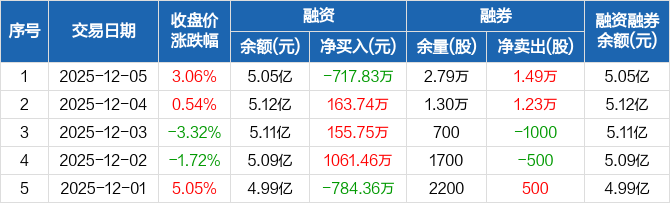 高新兴:融资净偿还717.83万元,融资余额5.05亿元(12-05)
