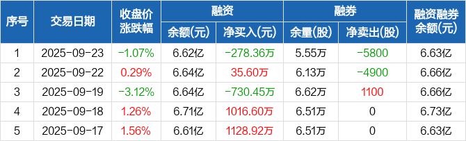 振芯科技:融资净偿还278.36万元,融资余额6.62亿元(09-23)
