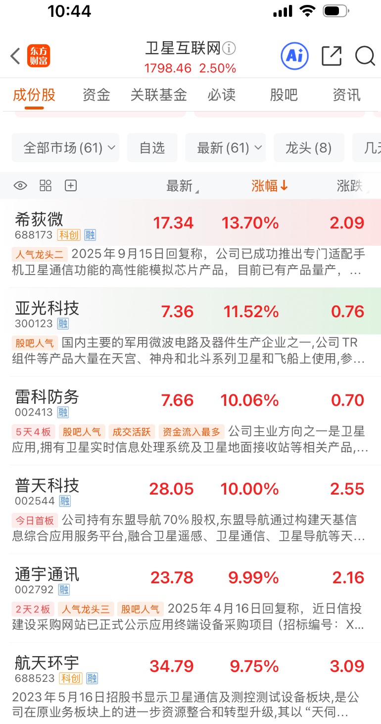 个股方面,乾照光电、雷科防务、普天科技、通宇通讯、顺灏股份等个股纷纷涨停,航天环宇、中科星图、星图测控、航天宏图、星网宇达等个股纷纷跟涨。