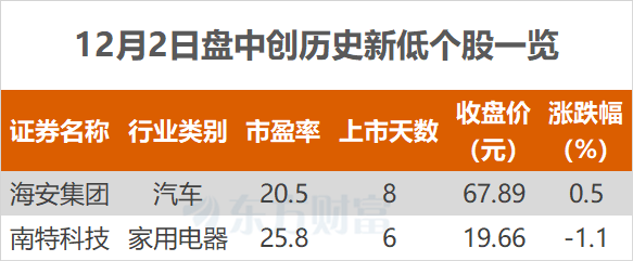 东方财富Choice数据显示,今日有2只个股盘中股价创历史新低。