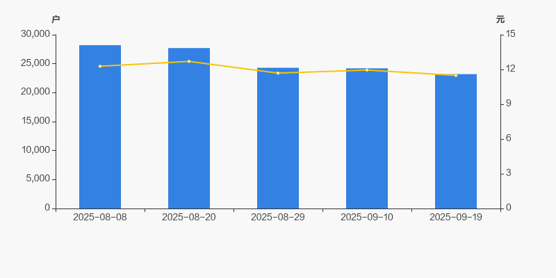 2025年8月8日至今,公司股东户数显著下降,区间跌幅为17.73%。2025年8月8日至2025年9月19日区间股价下降6.43%。