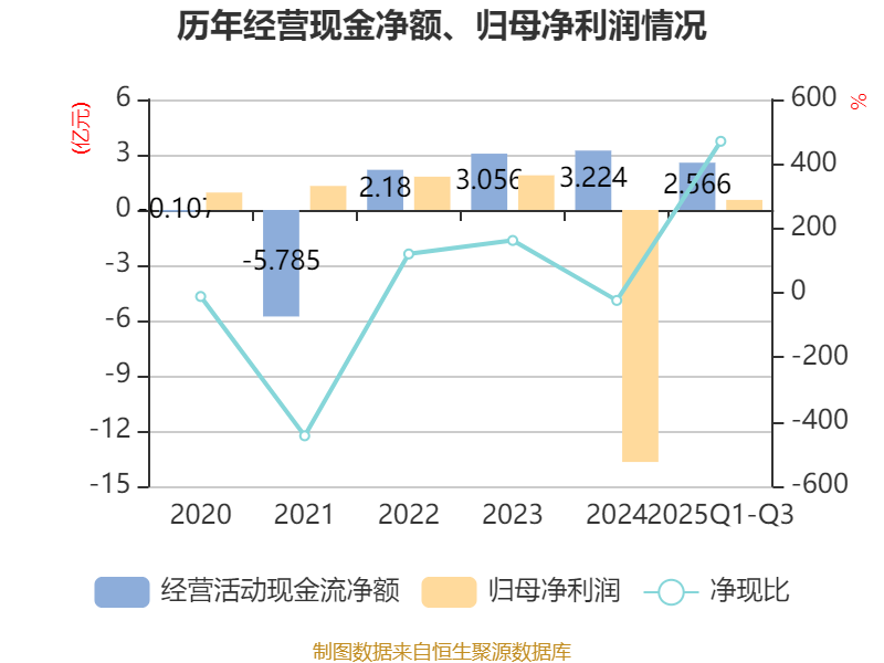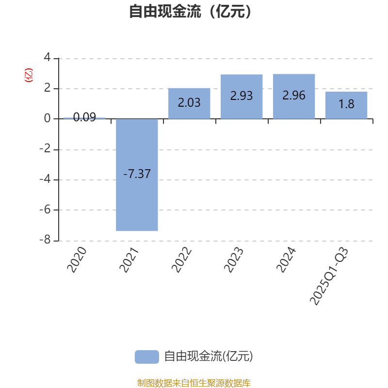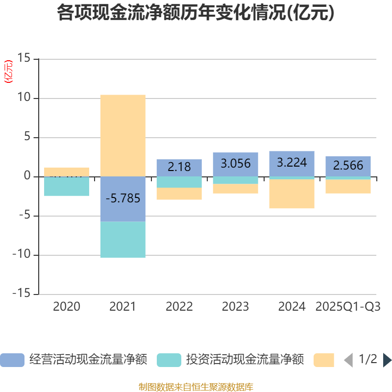 2025年前三季度,公司经营活动现金流净额为2.57亿元,同比下降10.08%;筹资活动现金流净额-1.76亿元,同比增加1.84亿元;投资活动现金流净额-4135.63万元,上年同期为-3730.87万元。