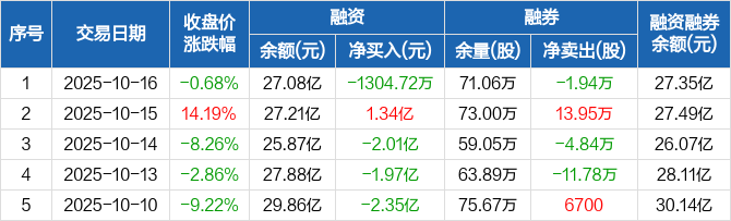 长盈精密:融资净偿还1304.72万元,融资余额27.08亿元(10-16)
