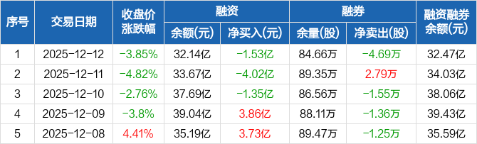 长盈精密:融资净偿还1.53亿元,两市排名第18(12-12)