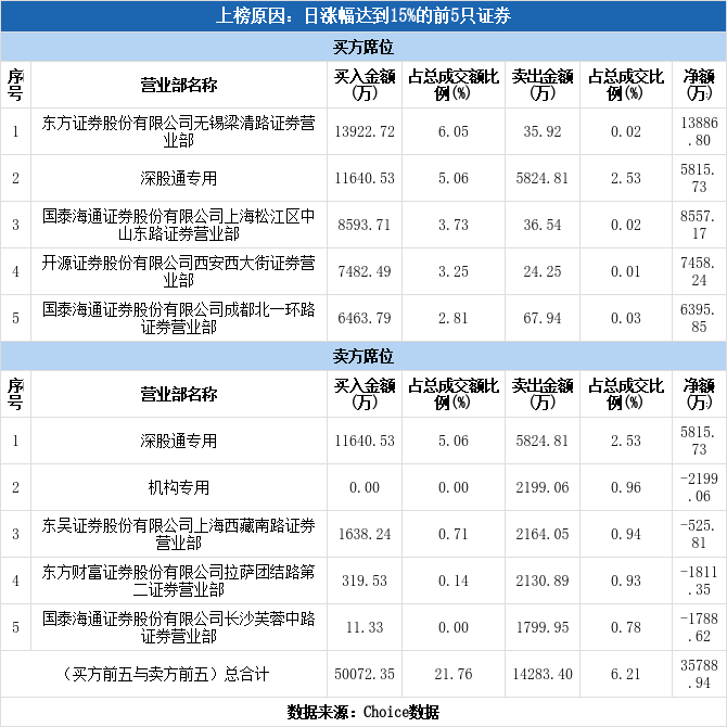 多主力现身龙虎榜,东方日升涨停(12-15)