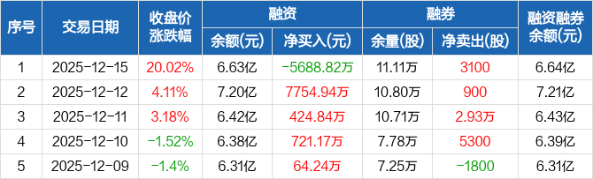 东方日升:融资净偿还5688.82万元,融资余额6.63亿元(12-15)