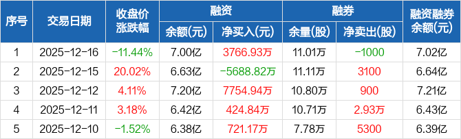 东方日升:融资净买入3766.93万元,融资余额7亿元(12-16)