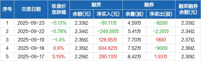 泰胜风能:融资净偿还81.11万元,融资余额2.33亿元(09-23)