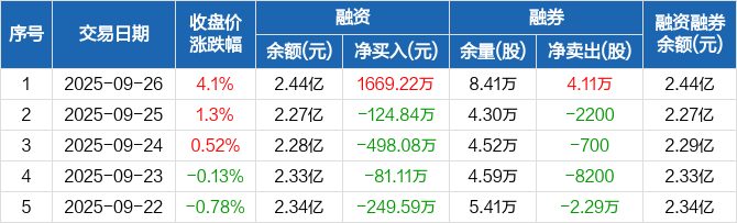 泰胜风能:融资净买入1669.22万元,融资余额2.44亿元(09-26)