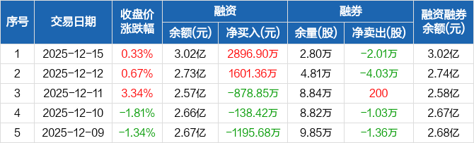 泰胜风能:融资净买入2896.9万元,融资余额3.02亿元(12-15)
