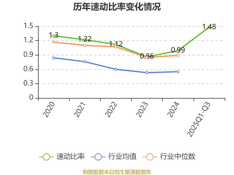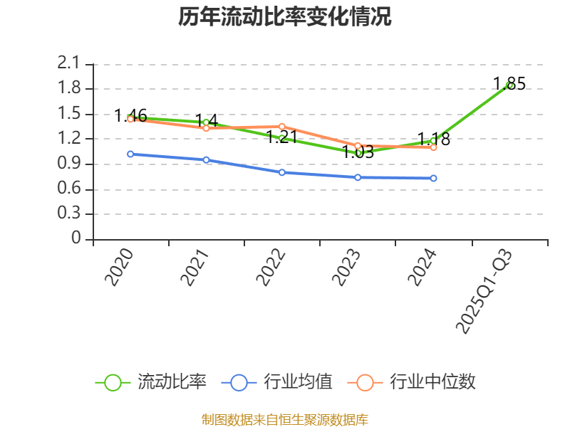 2025年前三季度,公司流动比率为1.85,速动比率为1.48。