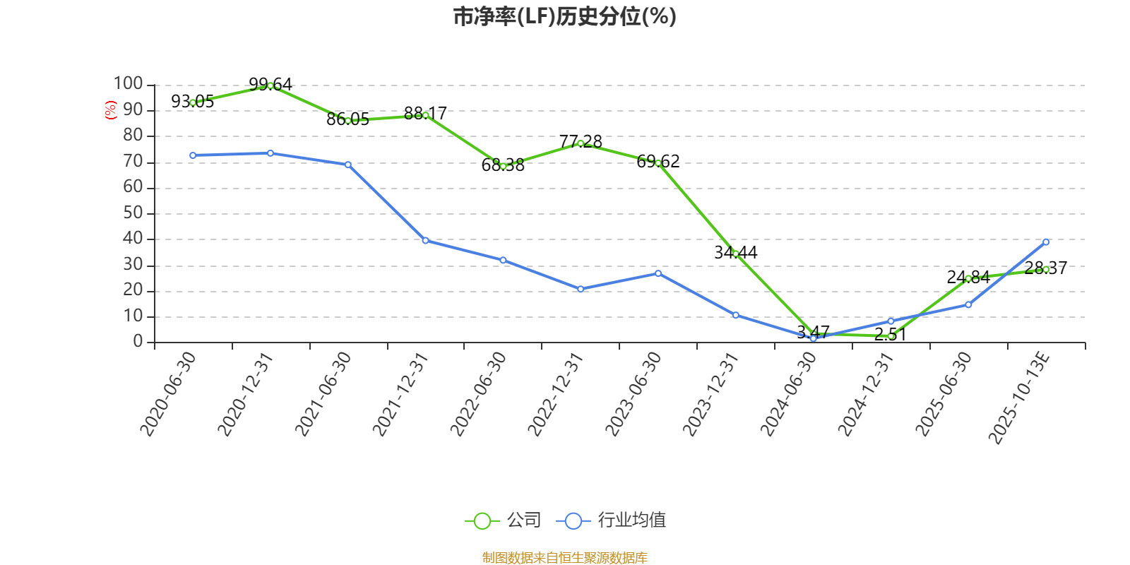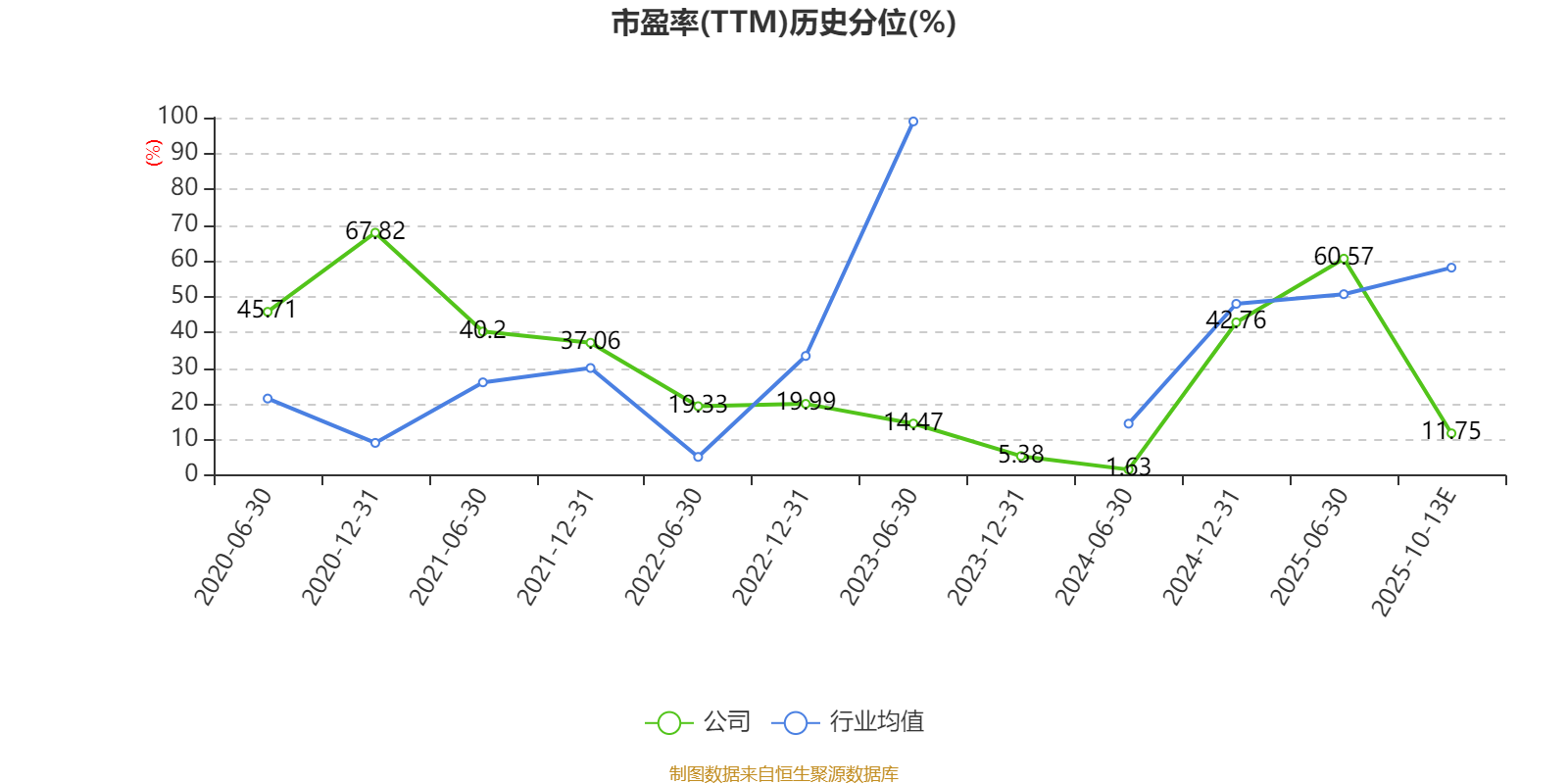 市盈率、市净率为负时,不显示当期分位数,会导致折线图中断。