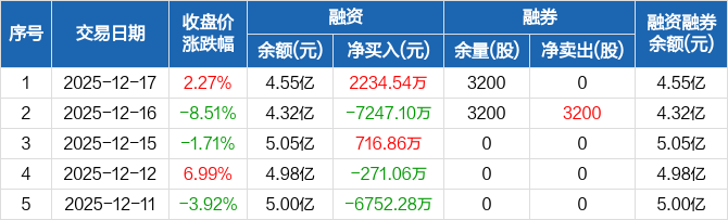 晓程科技:融资净买入2234.54万元,融资余额4.55亿元(12-17)