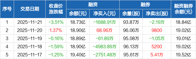 沃森生物:融资净偿还1688.91万元,融资余额18.73亿元(11-21)