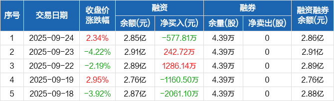 盈康生命:融资净偿还577.81万元,融资余额2.85亿元(09-24)