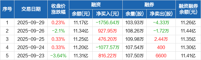 宋城演艺:融资净偿还1756.64万元,融资余额11.17亿元(09-29)