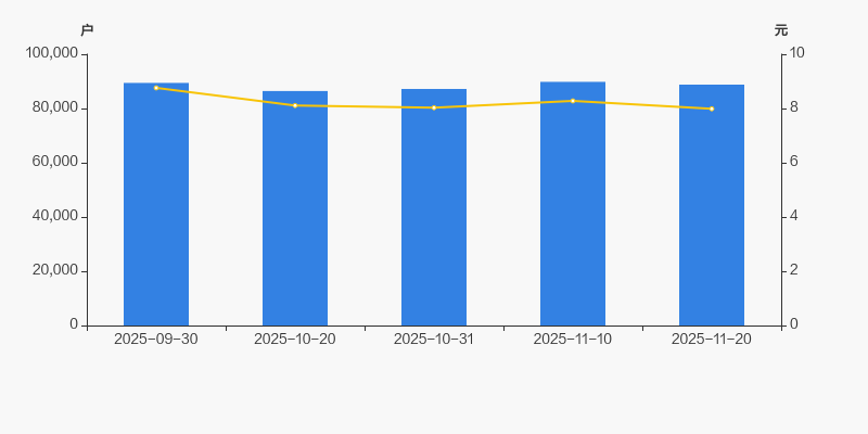2025年9月30日至今,公司股东户数有所下降,区间跌幅为0.71%。2025年9月30日至2025年11月20日区间股价下降8.79%。