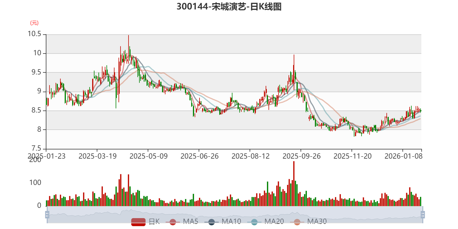 中证智能财讯宋城演艺(300144)1月23日晚间披露2025年度业绩预告,预计2025年实现营业收入21.5亿元至23.65亿元;归母净利润7.11亿元至9.15亿元,同比下降12.75%-32.21%;扣非净利润预计6.8亿元-8.84亿元,同比下降14.36%-34.12%。以1月23日收盘价计算,宋城演艺目前市盈率(TTM)约为24.35倍-31.34倍,市净率(LF)约2.65倍,市销率(TTM)约9.87倍。