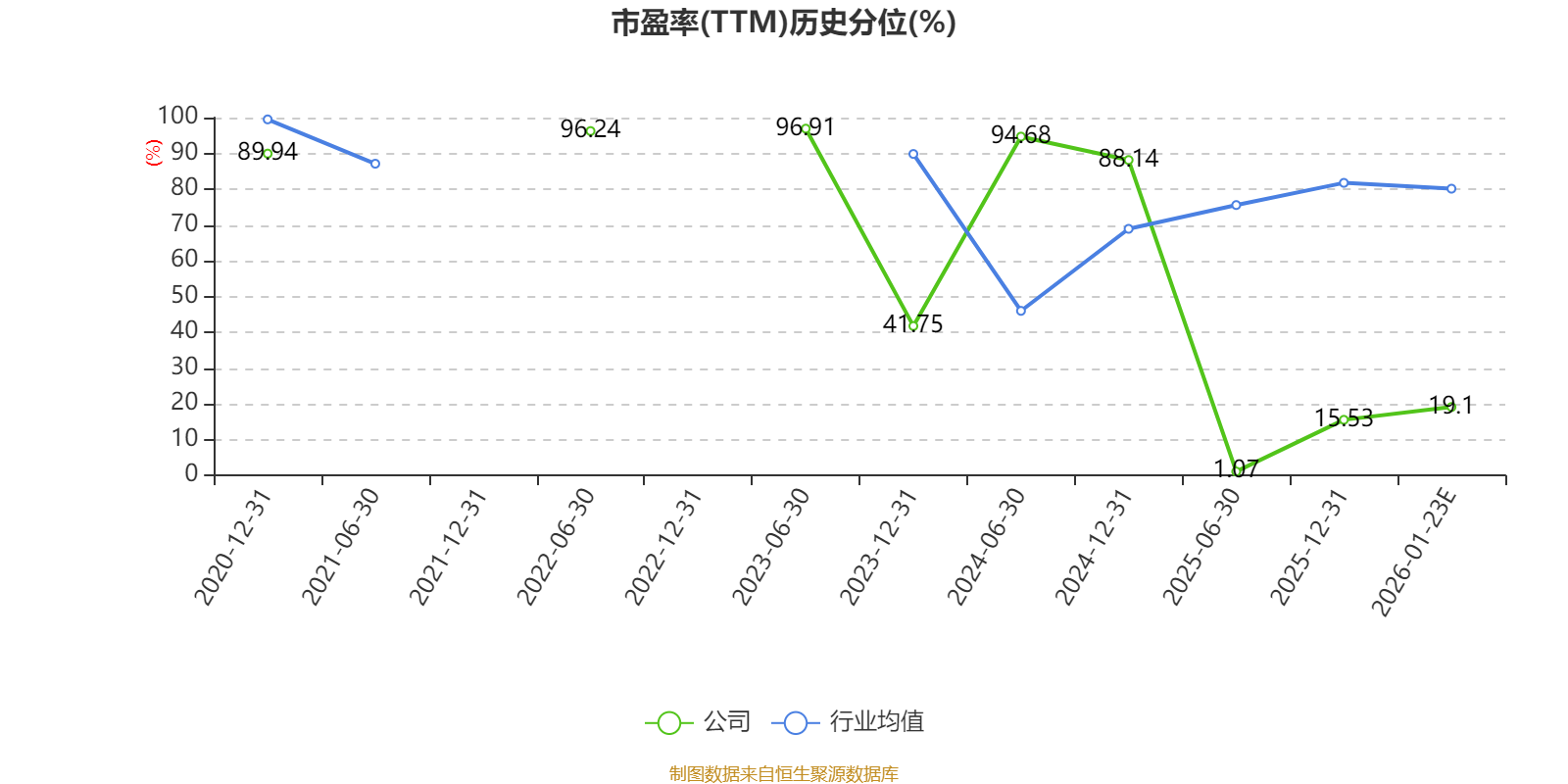 市盈率、市净率为负时,不显示当期分位数,会导致折线图中断。