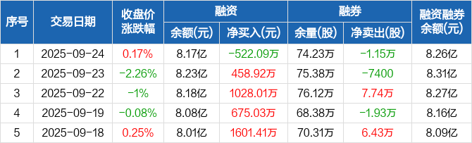汤臣倍健:融资净偿还522.09万元,融资余额8.17亿元(09-24)