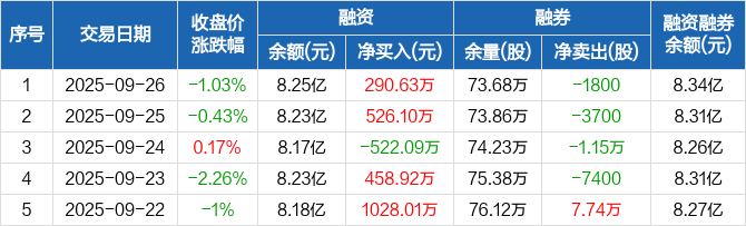 汤臣倍健:融资净买入290.63万元,融资余额8.25亿元(09-26)