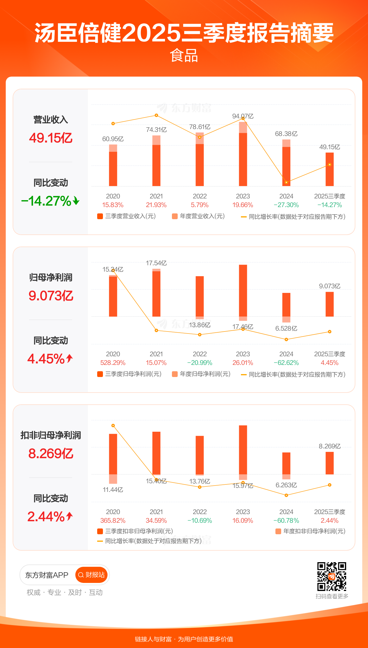 图解财报:汤臣倍健前三季归母净利润9.07亿元,同比增长4.45%