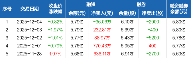 昌红科技:融资净偿还36.06万元,融资余额5.79亿元(12-04)