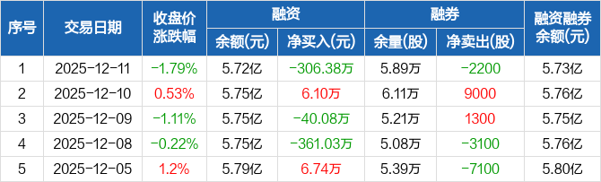 昌红科技:融资净偿还306.38万元,融资余额5.72亿元(12-11)