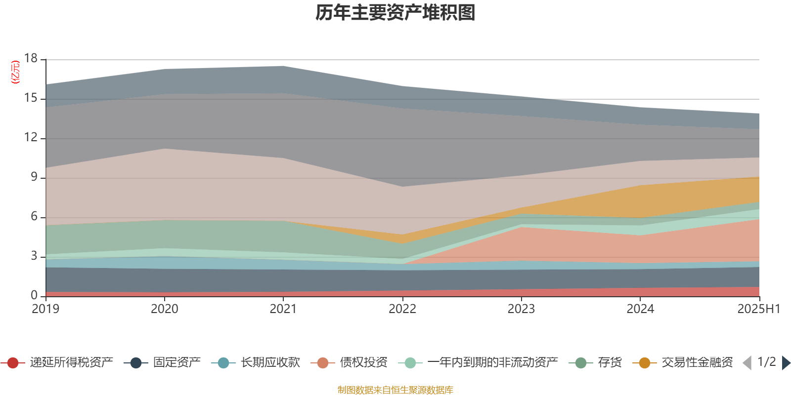 资产重大变化方面,截至2025年上半年,公司债权投资较上年末增加51.72%,占公司总资产比重上升8.36个百分点;货币资金较上年末减少22.4%,占公司总资产比重下降3.8个百分点;交易性金融资产合计较上年末减少22.84%,占公司总资产比重下降3.5个百分点;应收票据及应收账款较上年末减少21.16%,占公司总资产比重下降2.38个百分点。