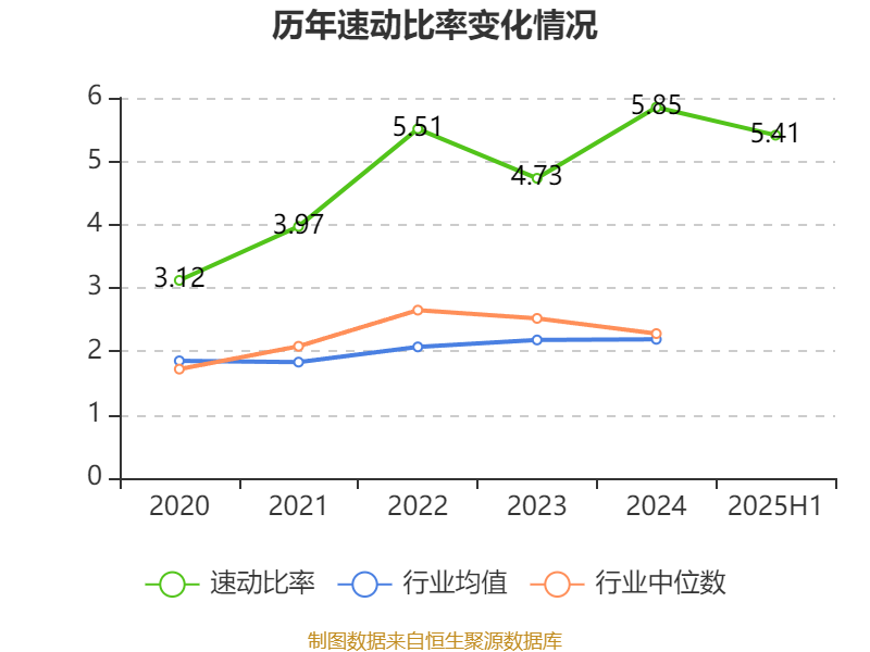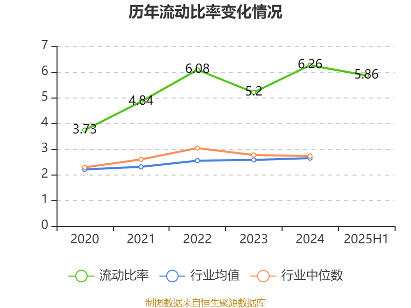 2025年上半年,公司流动比率为5.86,速动比率为5.41。