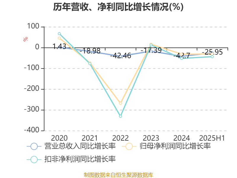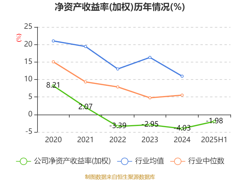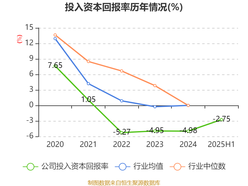 盈利能力方面, 2025年上半年公司加权平均净资产收益率为-1.98%,同比下降0.54个百分点。公司2025年上半年投入资本回报率为-2.75%,较上年同期下降0.56个百分点。
