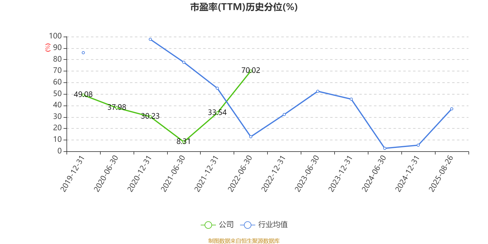 市盈率、市净率为负时,不显示当期分位数,会导致折线图中断。