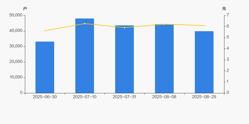 2025年6月30日至今,公司股东户数显著增长,区间涨幅为20.28%。2025年6月30日至2025年8月29日区间股价上涨8.36%。