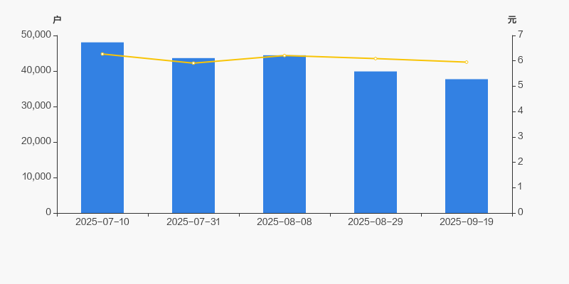2025年7月10日至今,公司股东户数显著下降,区间跌幅为21.59%。2025年7月10日至2025年9月19日区间股价下降5.10%。