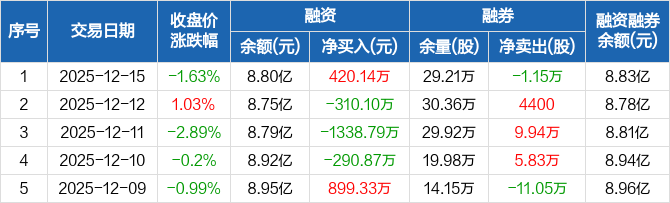 东方国信:融资净买入420.14万元,融资余额8.8亿元(12-15)