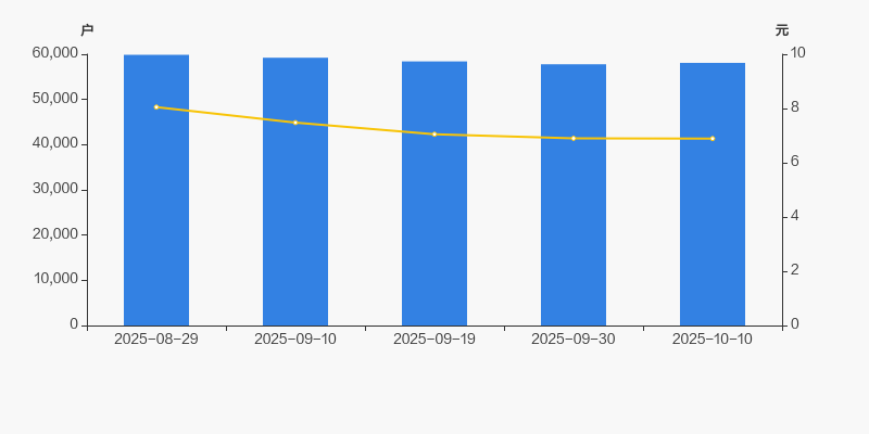 2025年8月29日至今,公司股东户数有所下降,区间跌幅为2.98%。2025年8月29日至2025年10月10日区间股价下降14.41%。
