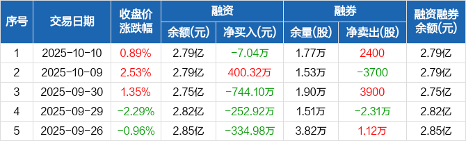 东富龙:融资净偿还7.04万元,融资余额2.79亿元(10-10)