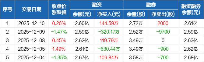 东富龙:融资净买入144.59万元,融资余额2.6亿元(12-10)