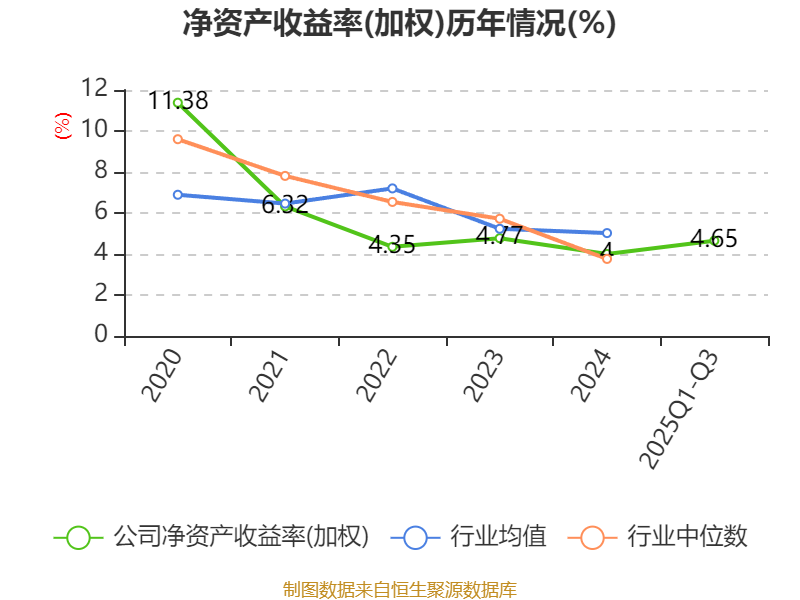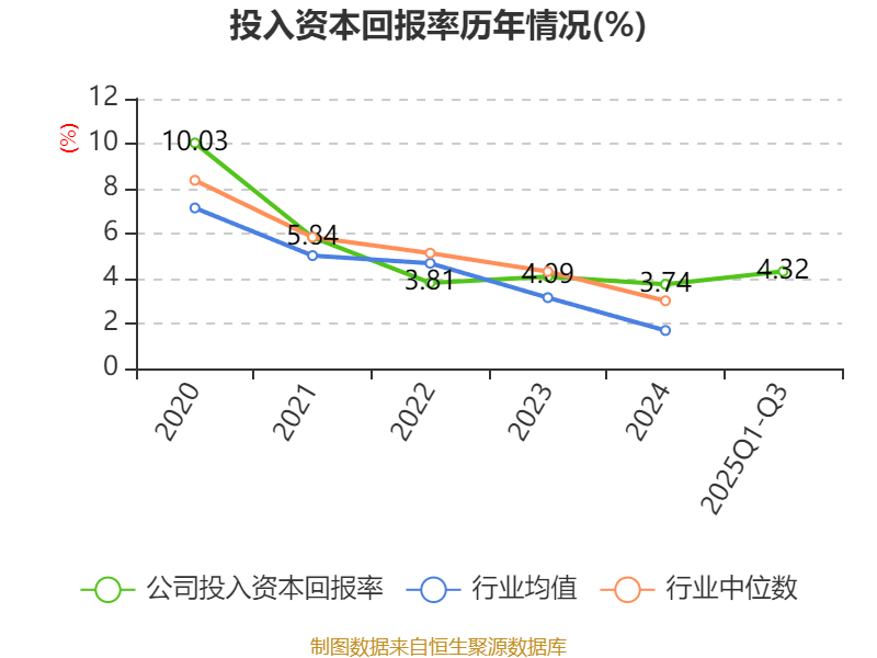 盈利能力方面, 2025年前三季度公司加权平均净资产收益率为4.65%,同比上升0.11个百分点。公司2025年前三季度投入资本回报率为4.32%,较上年同期上升0.05个百分点。