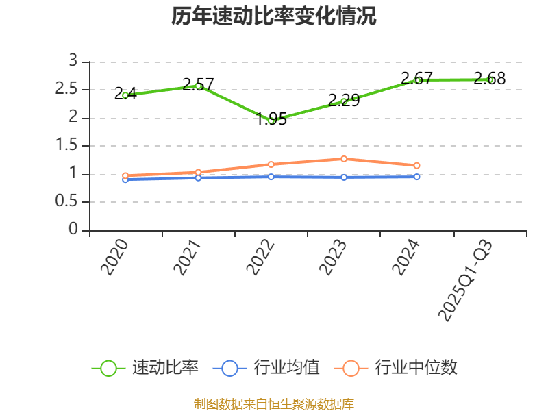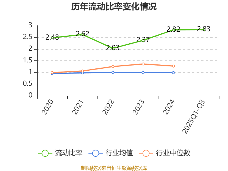 2025年前三季度,公司流动比率为2.83,速动比率为2.68。
